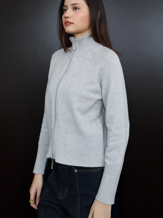 Millia Cropped Knit with Zipper - Grey