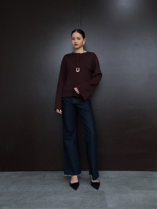 Camia Fitted Knit Cardigan - Brown