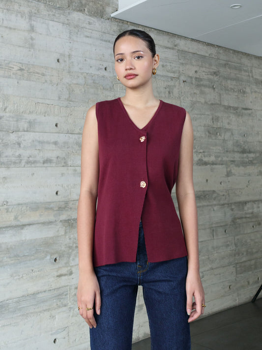 Florencia Knit Assymetric Top All Colours - Burgundy