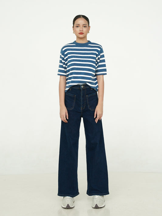 Mercia Striped Knit Top Short Sleeve - Striped Dark Blue