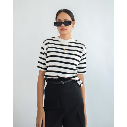 Mercia Striped Knit Top Short Sleeve - Striped Black