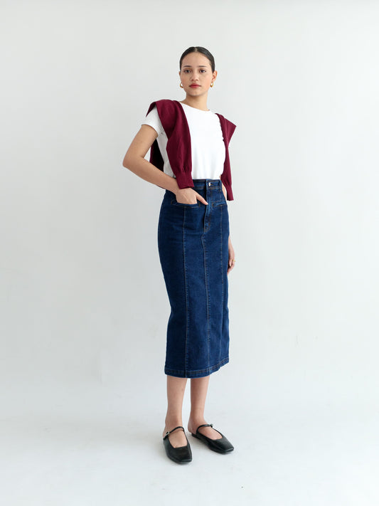 Sold outLeticia Denim Midi Skirt - Dark Blue