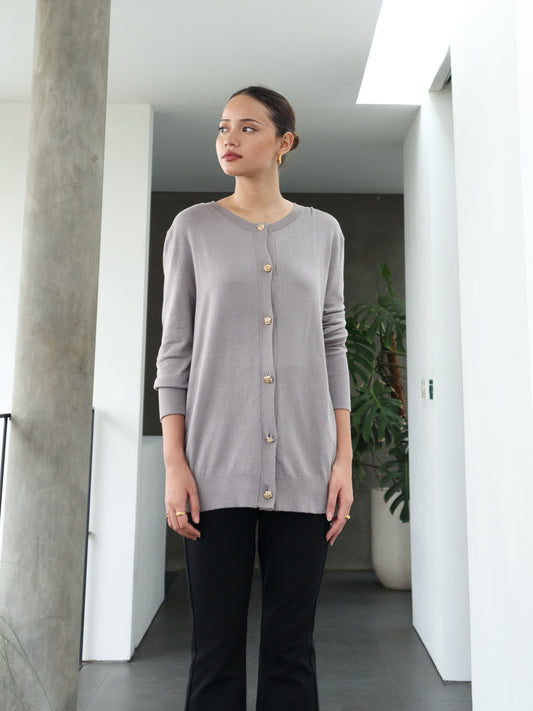 Stovia Crease Side Oversized Shirt - Dark Taupe
