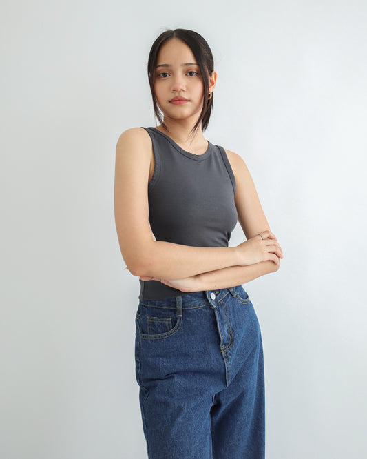 Cecilia Cropped Halter Tank Top - Dark Grey