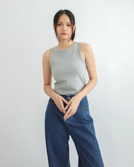 Olivia Ribbed Vest Tank Top - Light Grey