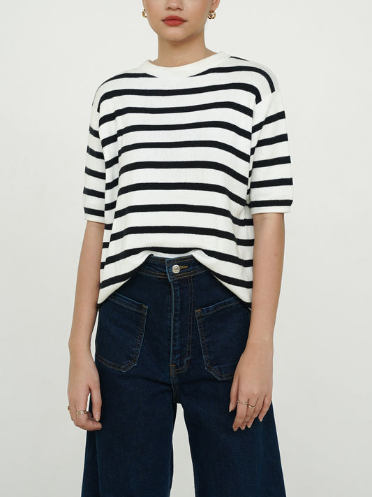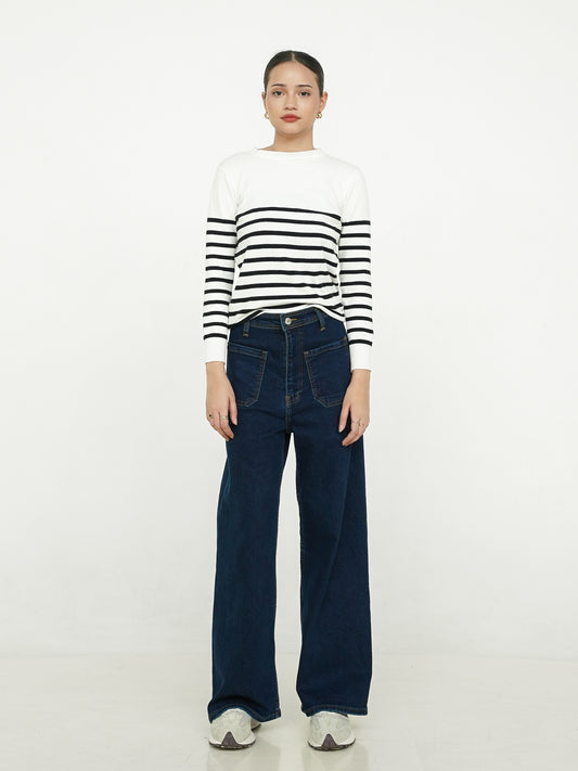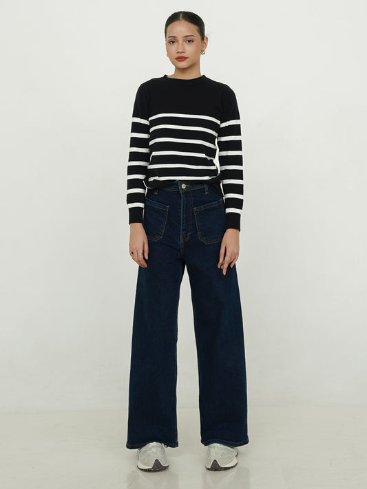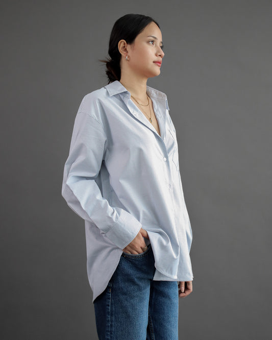 Tania Basic Oversized Shirt with Pocket - Striprd Blue
