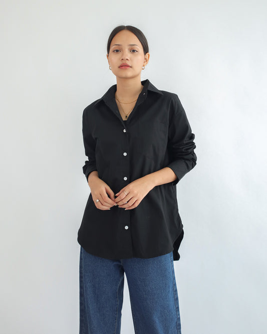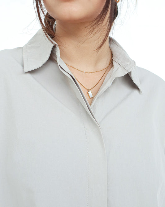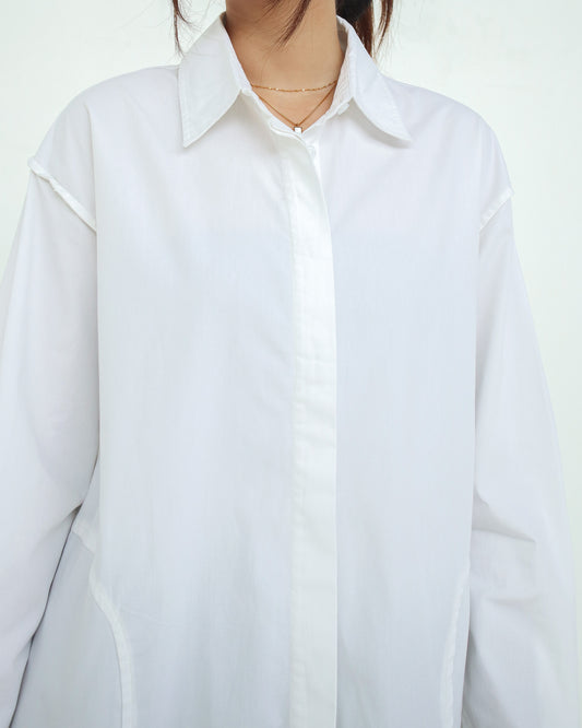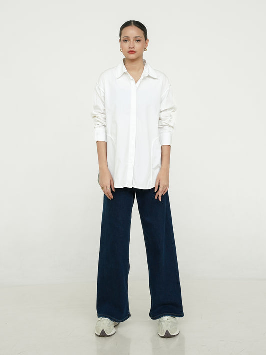 Tania Basic Oversized Shirt with Pocket - Broken White