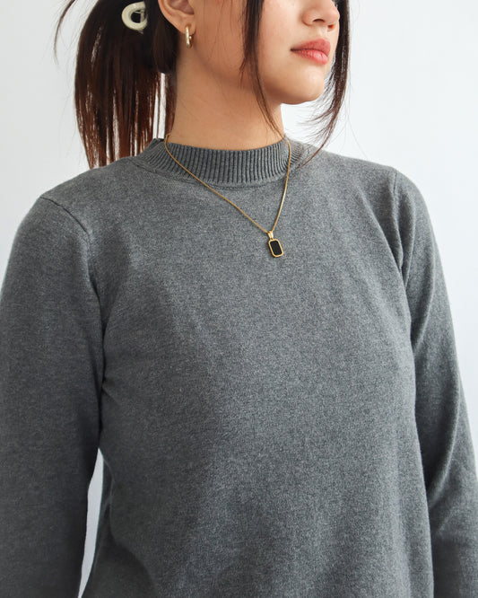 Valeria Mock Neck Knit Sweater - Dark Grey