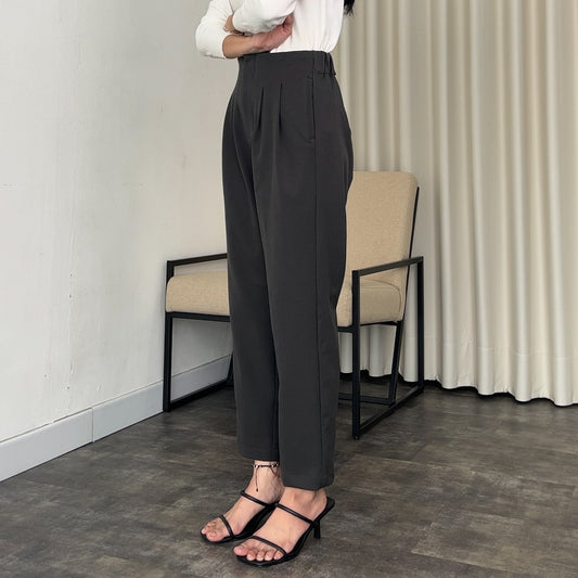 Tatia Highwaisted Ankle Pants with Darts - Dark Grey