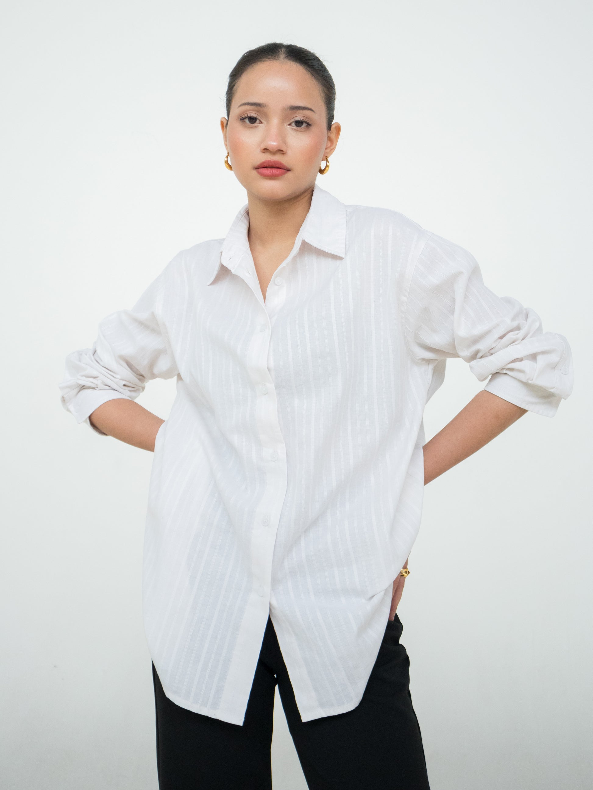 Alicia Embroidery Oversized Shirt - Bright White