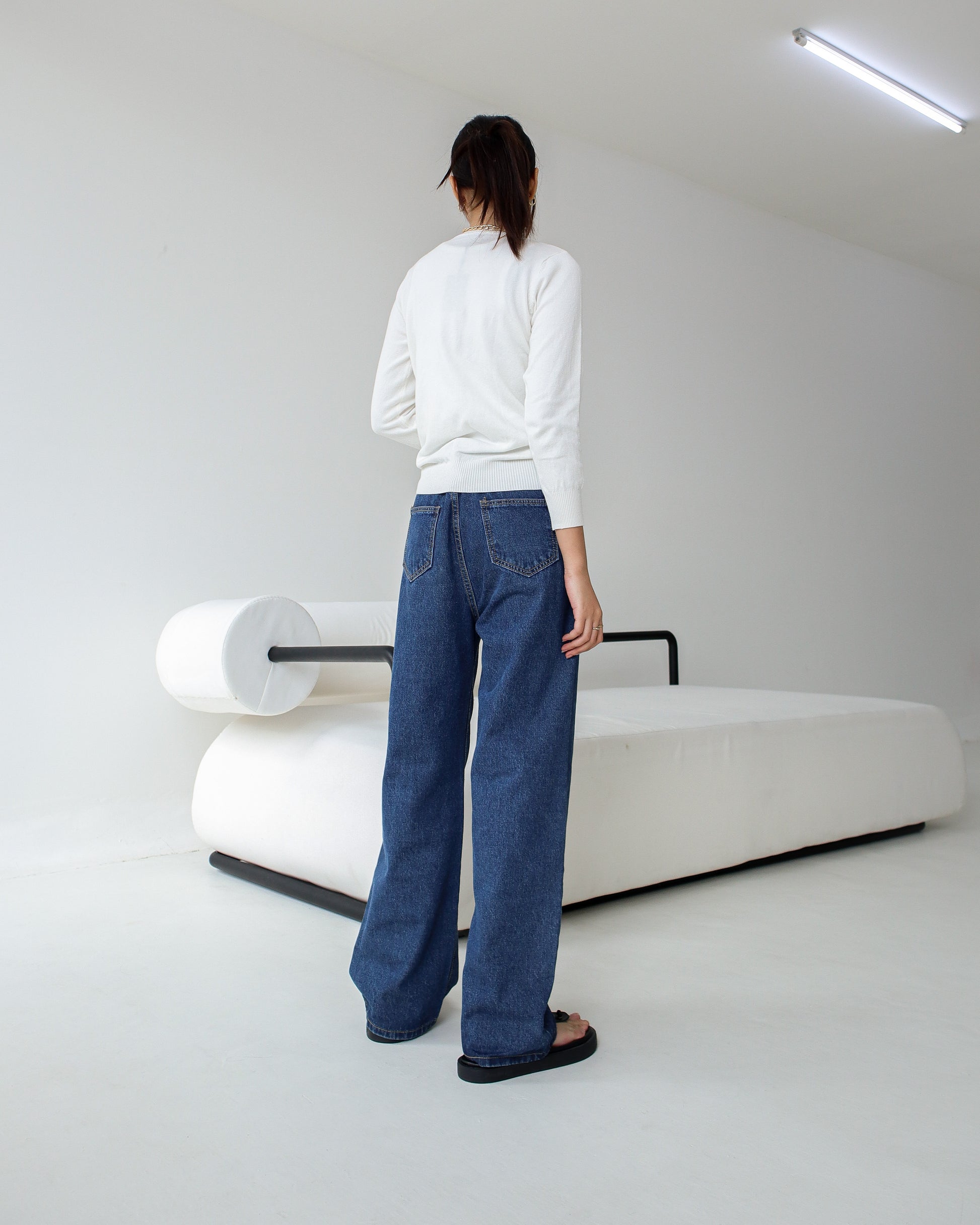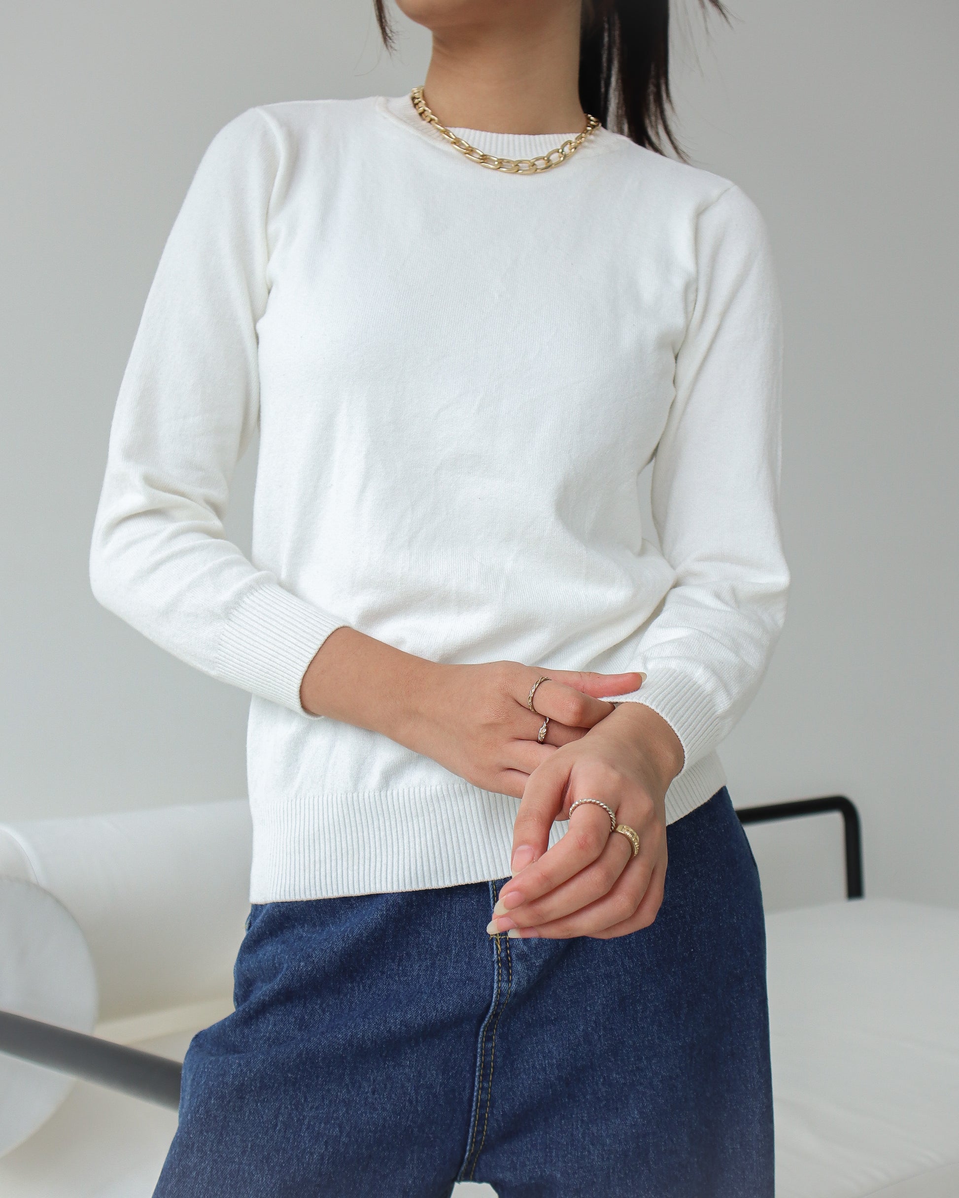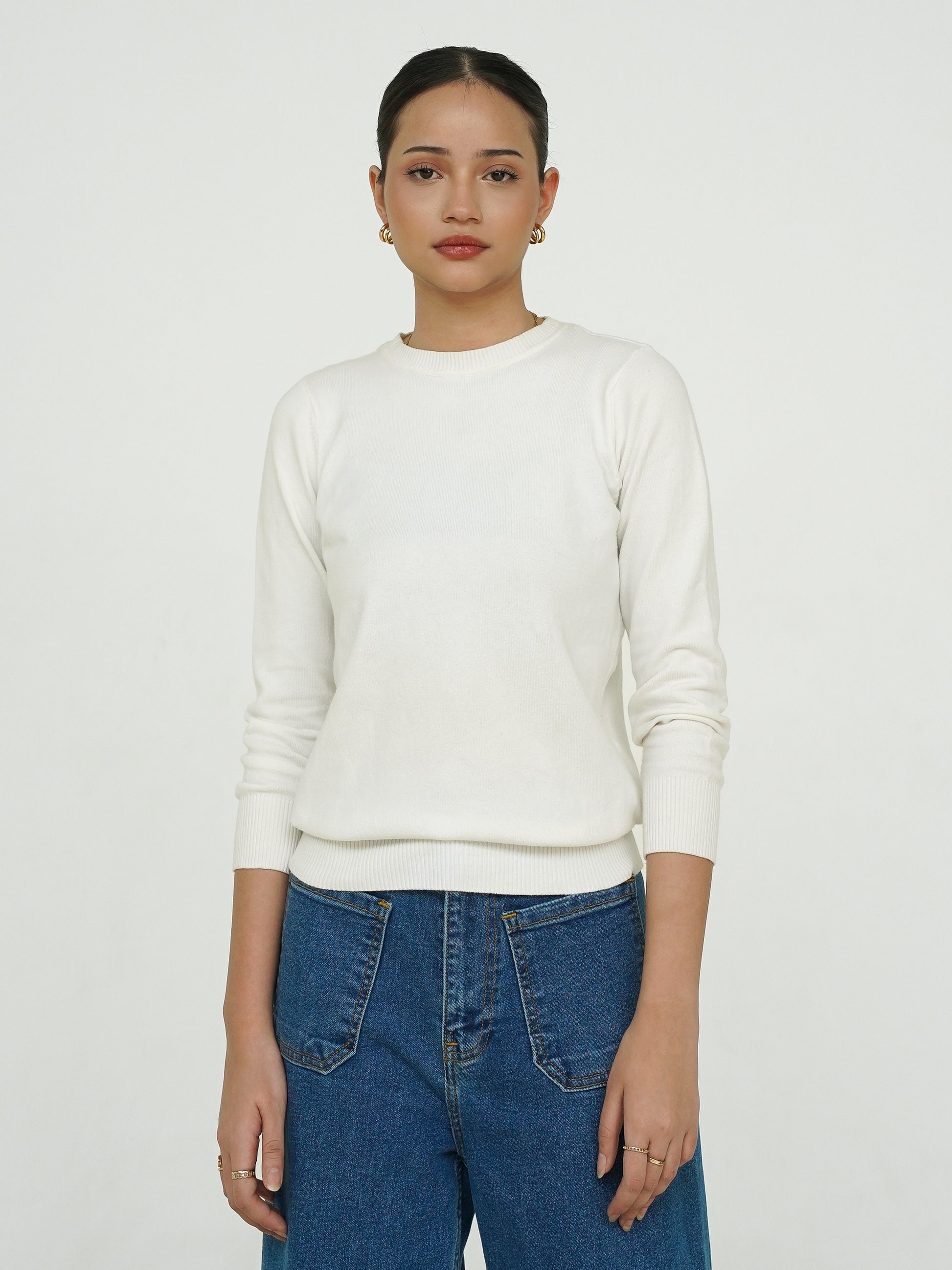 Long sleeve sweater with regular fit and round neck detail. Ribbed detail on the sleeve, neck, and hem.