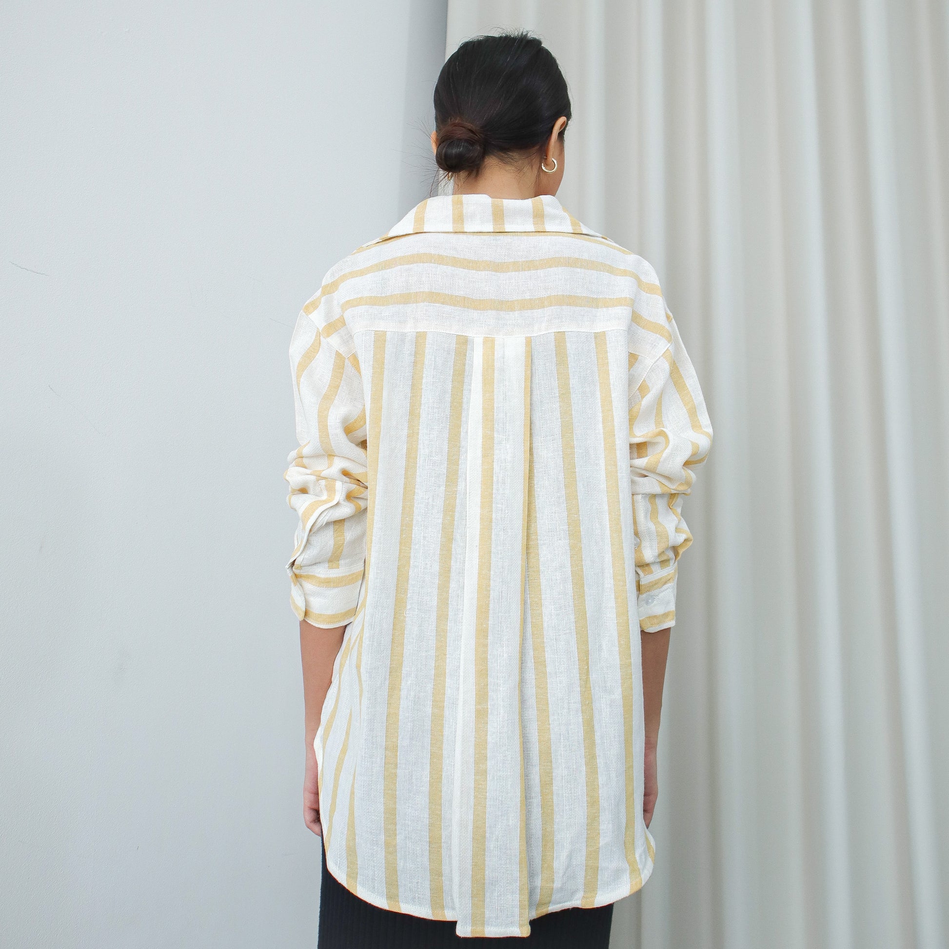 Striped linen shirt is the perfect combination of laid-back and polished. With its oversized fit, you can wear this shirt with just about anything—jeans, shorts, or a skirt. It's also great for layering over a tank top.