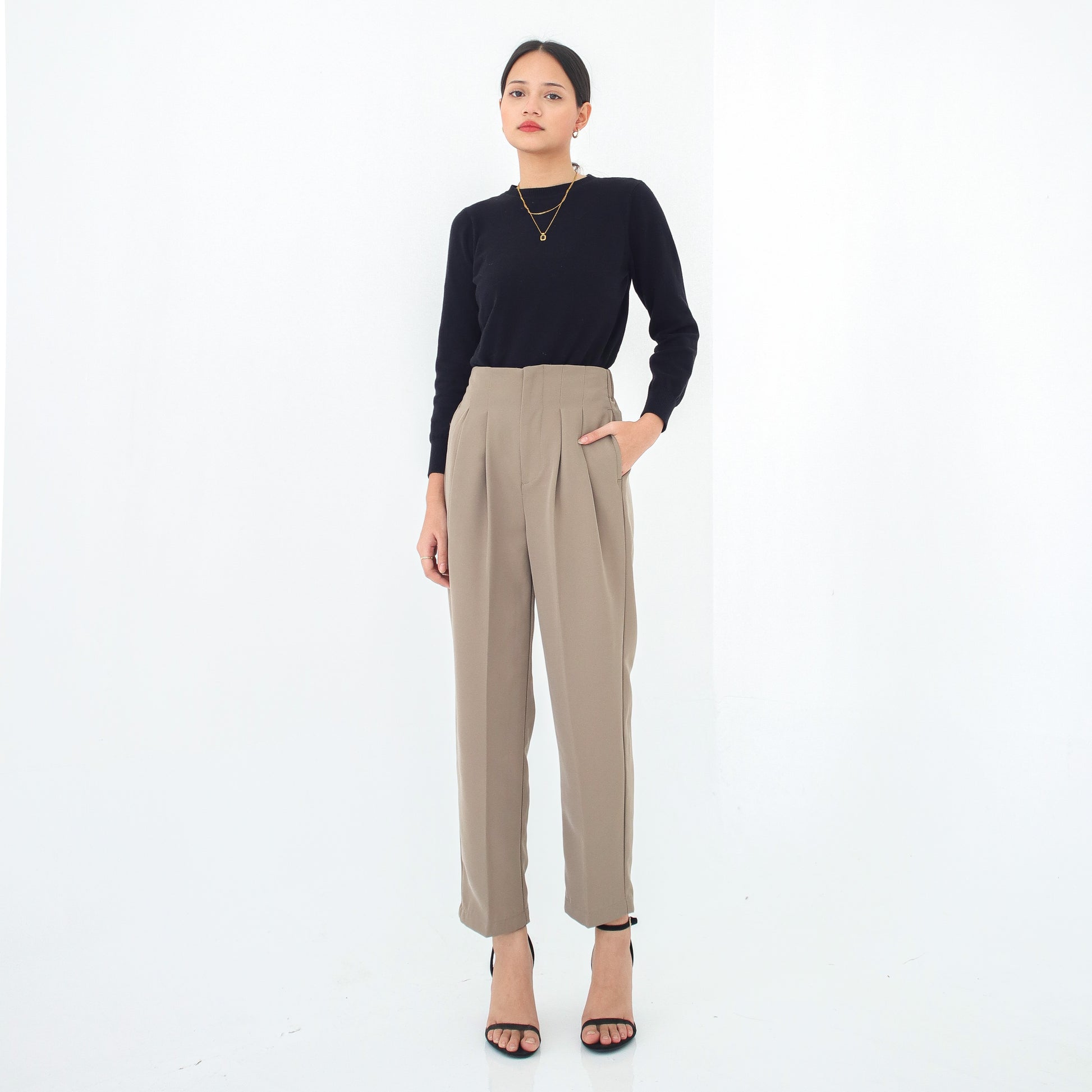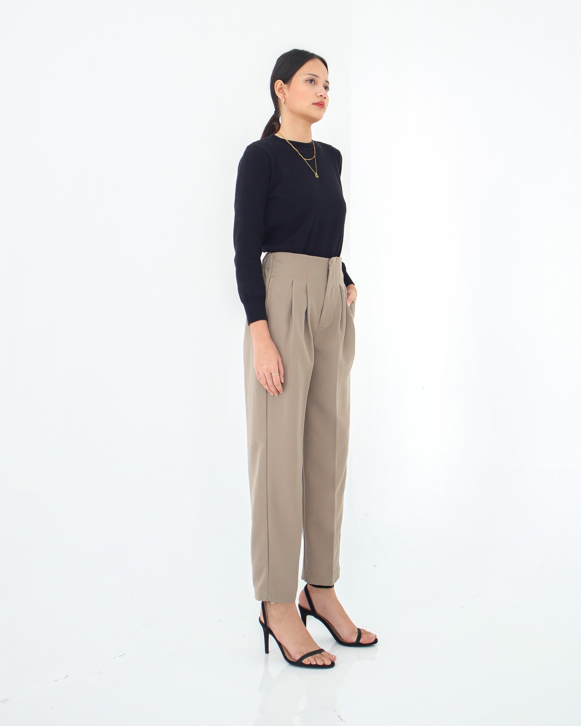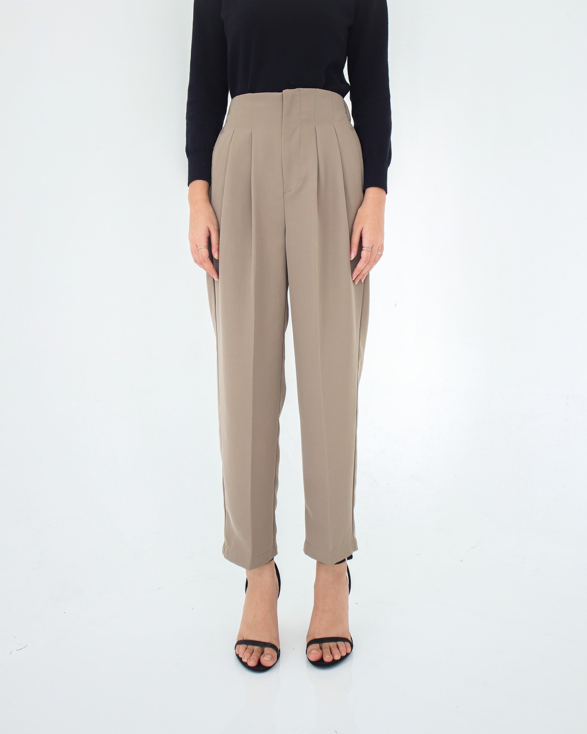 Tatia Highwaisted Ankle Pants with Darts - Taupe