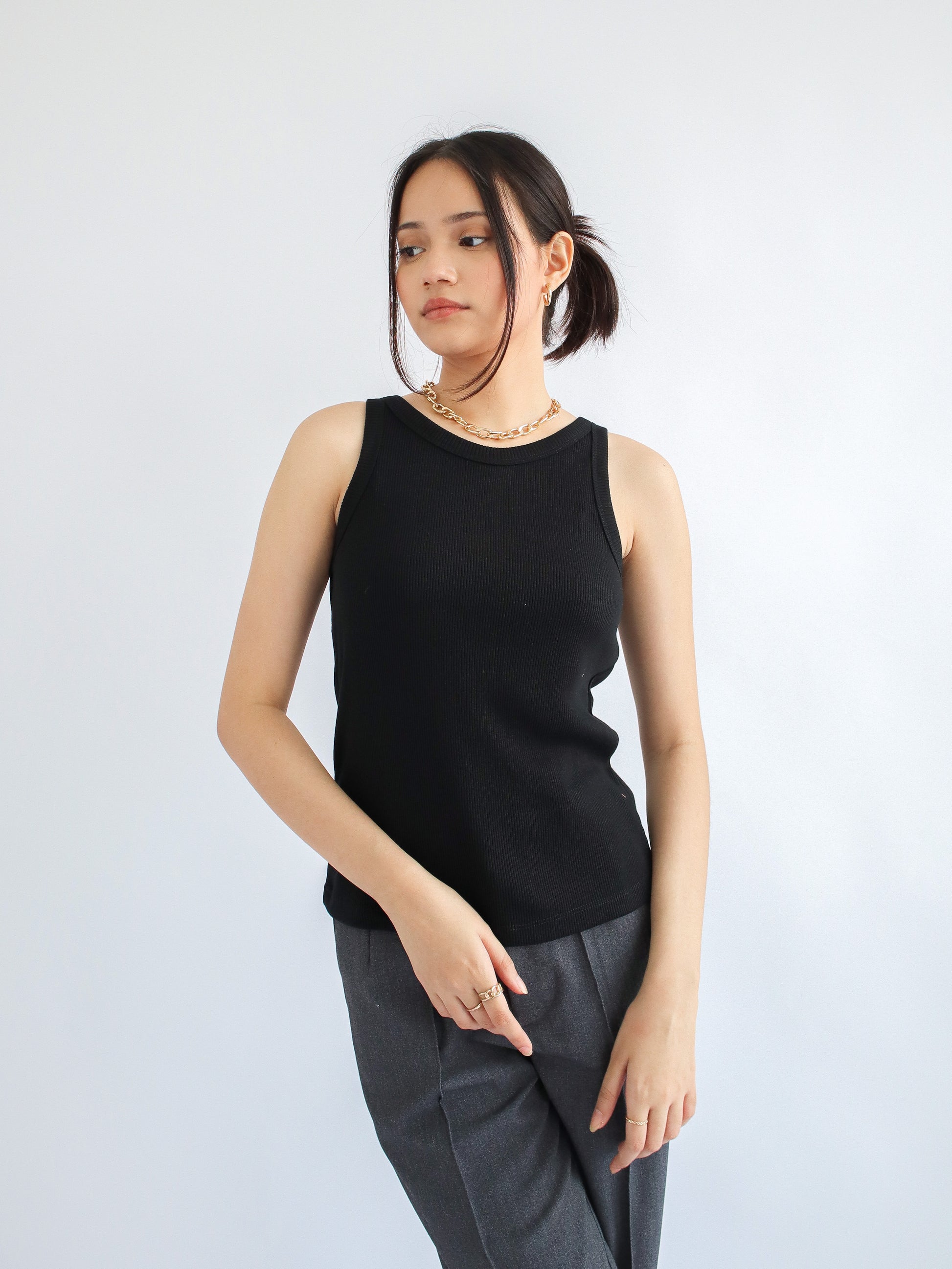 Olivia Ribbed Vest Tank Top - Black