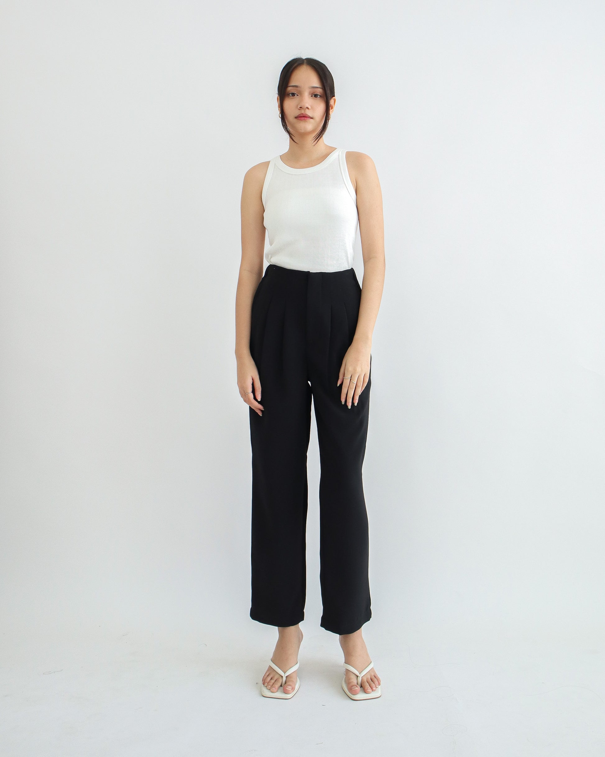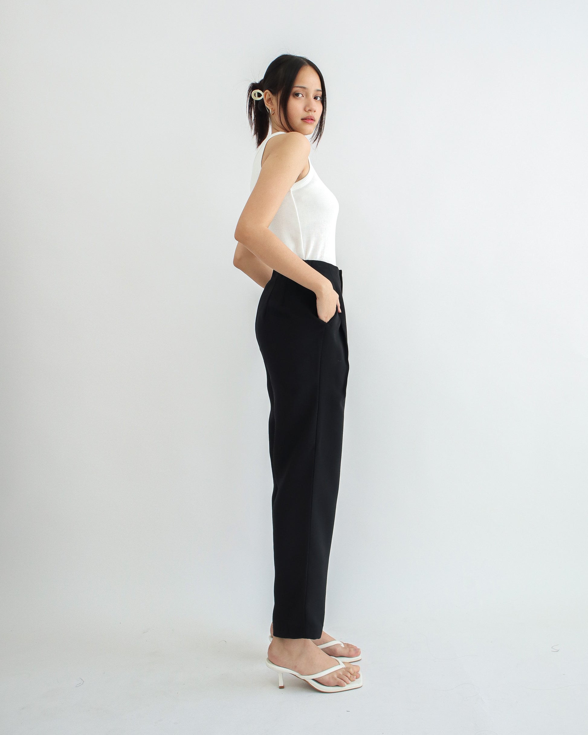 Tatia Highwaisted Ankle Pants with Darts - Black